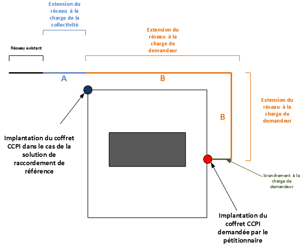 A l’occasion d’un projet de développement et de construction, il se peut que le réseau électrique ne soit pas présent et qu’une extension du réseau soit nécessaire. Cette extension, dans certains cas, peut être à la charge de la collectivité en charge de l’urbanisme.