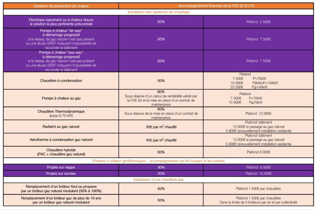 – Accompagnement financier des systèmes chauffage gaz naturel ou électrique